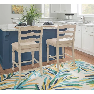 Unique and stylish, the Marino Counter Stool will add eye-catching design to your kitchen counter or high-top table. The stool features elegant turned front legs and a unique curved back design. The linen padded seat easily complements the distressed finish. Counter Height.
