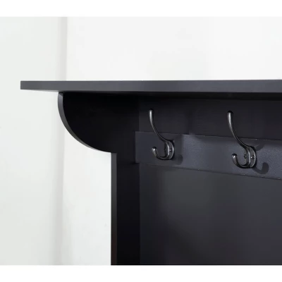 Keep your mud room or entryway neat and tidy with this beautiful and unique hall tree with storage bench. Spacious split top seating area flips up to reveal a large storage section. A back panel with four hooks is perfect for hats and coats. Rich Antique Black finish with red rub through for that “distressed” look. This hall tree will provide function and style to any room.
