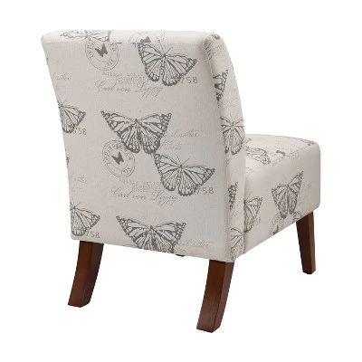 The Linen Lily Chair is a stylish seating option for any room in your home. The chair has a plush seat and back that is upholstered in a printed butterfly linen. Straight lined legs are in a dark finish. A stylish way to add function and pattern to your space.