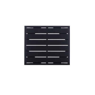 Modern, modest, and reliable, this stylish side table will lend a hand when you need someone to hold your drink or elevate your outdoor decor. Made of aluminum for strength, stability and easy transport, the table weighs less than 10 lbs but can support up to 100 lbs. Moreover, there’s no need to stress about taking it in and out after each use, as the black powder coated finish is rust resistant. A plethora of matching chairs, couches and more are also available for purchase to complete your ideal patio set.Overall Width: 19.75”Overall Depth: 17.25”Overall Height: 20.25”Top Thickness: 2.5”