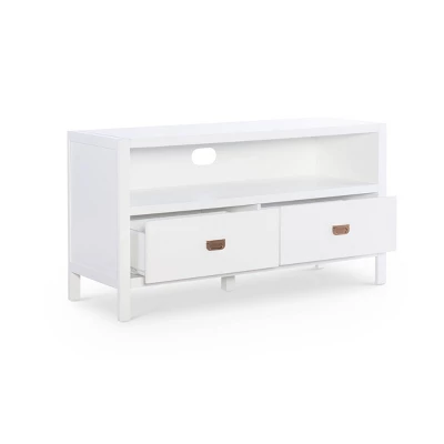 The Peggy Media Center is the perfect piece to hold all your entertainment essentials. The media center features a white finish accented by rose gold drawer pulls. Two drawers provide hidden storage for remotes and games, while the open shelf is ideal for players and game consoles. Wire management holes keep cords organized and out of the way. The spacious top places your large television front and center. Sturdy and durable design.