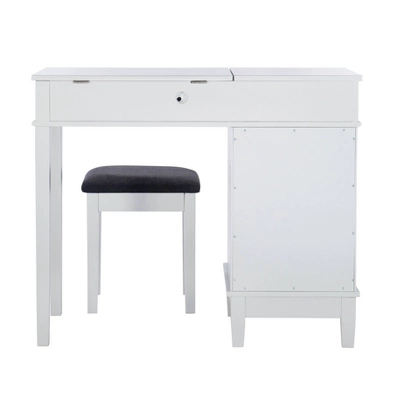 - Flip top features a mirror and open storage area.