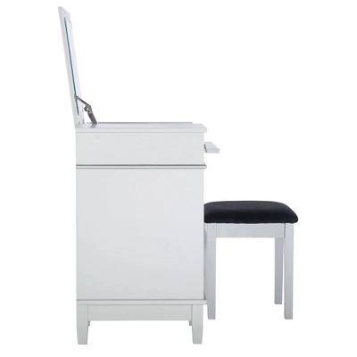 - Weight Limit: Stool – 250lbs, Vanity – 145lbs (Top 100lbs, Drawer 10lbs, Storage 15lbs, Shelf 15lbs)