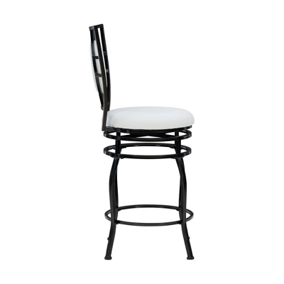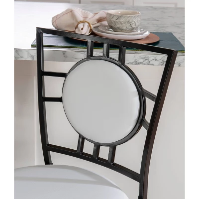 The Townsend Adjustable Stool is a sleek modern addition to any counter, bar or high-top dining table. A dark black finish allows the white PU seat and back to pop! A swivel seat and adjustable leg height provides versatility and functionality to the piece. Crafted of metal, the stool is sturdy and durable. 275-pound weight limit.